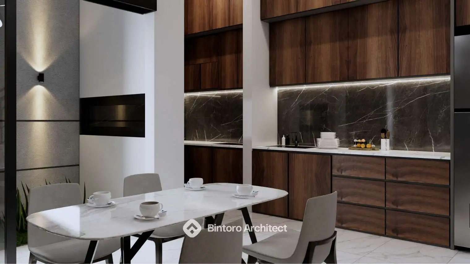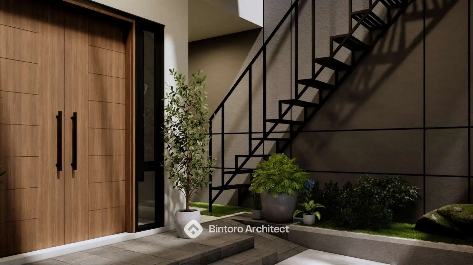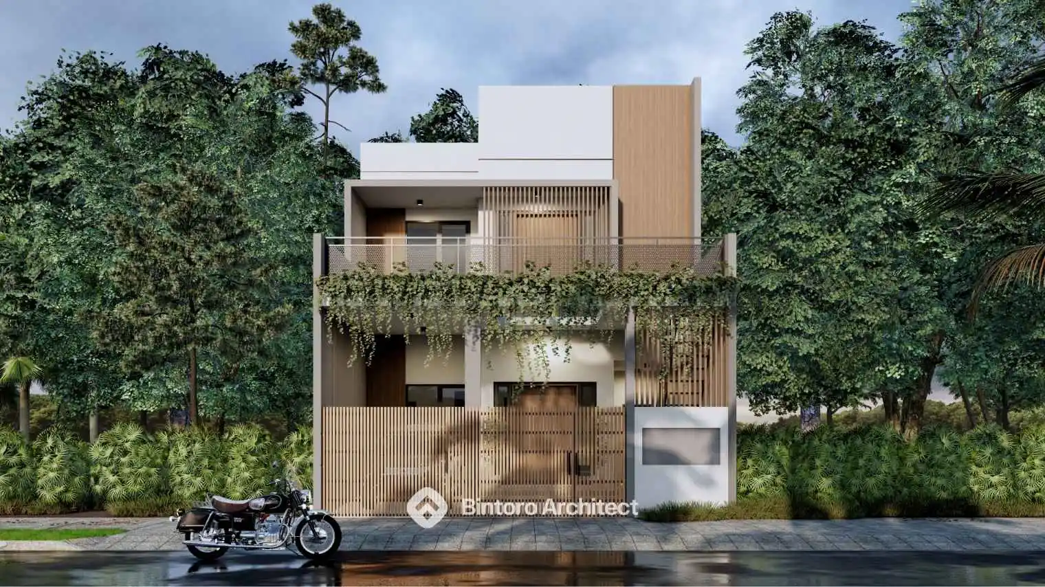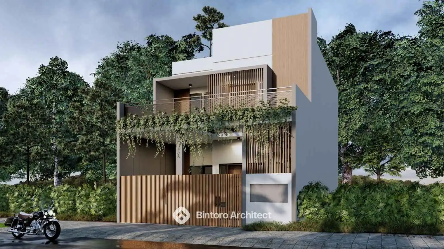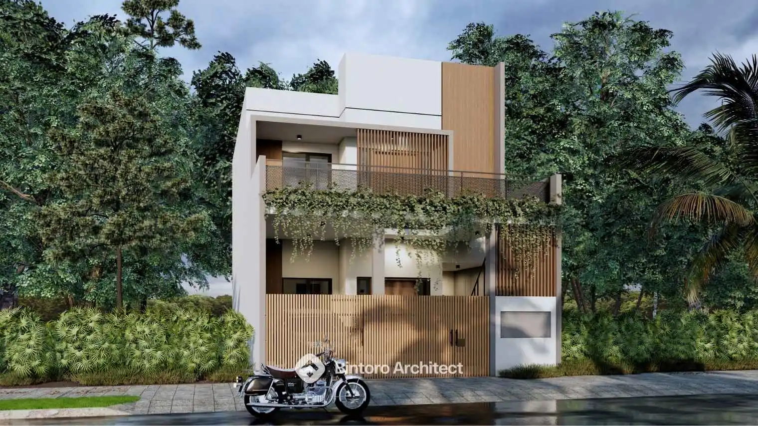 Rumah modern tropis dengan karakter fasad natural dan harmonis, memadukan estetika dan fungsi untuk hunian keluarga masa kini. Wujud nyata layanan Jasa Desain Rumah Profesional yang terencana.