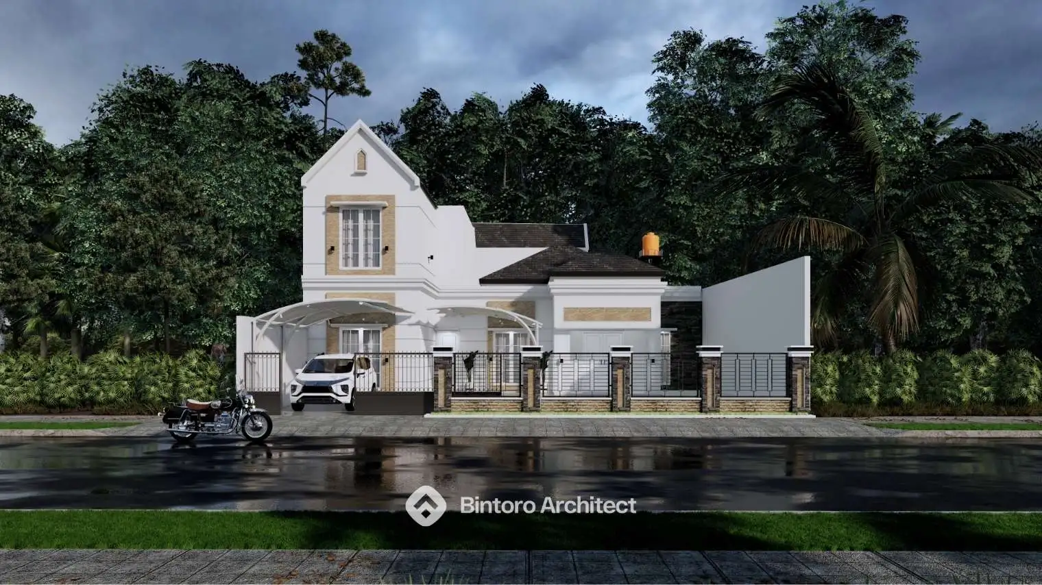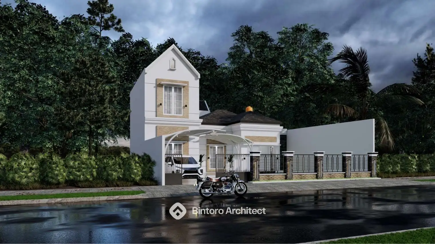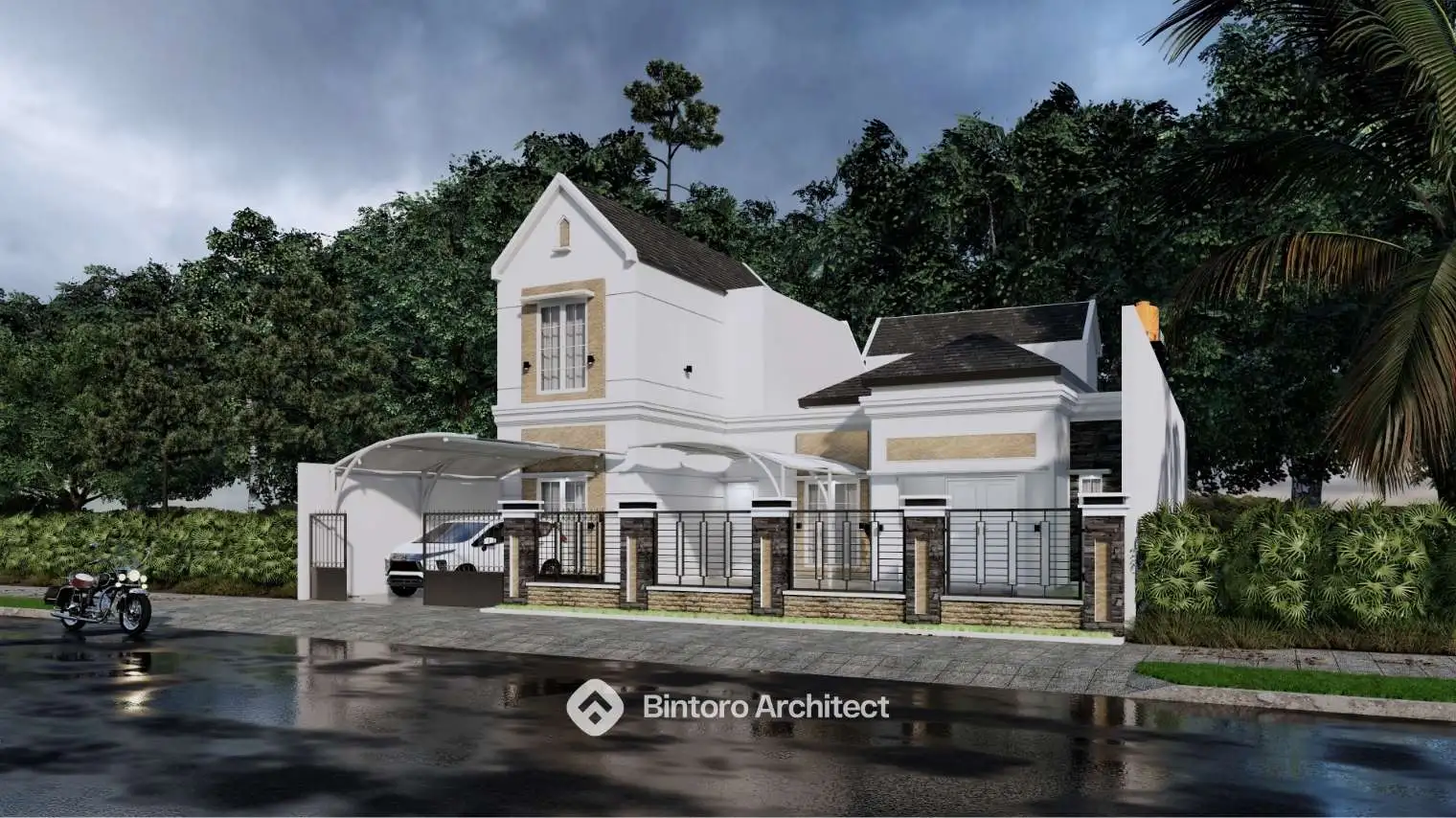 Desain rumah modern classic yang menggabungkan keanggunan klasik dan sentuhan modern secara seimbang, menghadirkan hunian yang timeless dan nyaman. Salah satu karya terbaik dari Jasa Desain Rumah Profesional.